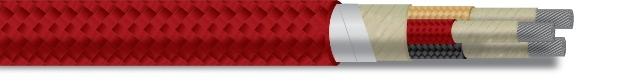 Phlogopite mica tapes, fiberglass braid jacket, high-temperature saturant. A phlogopite mica tape thermal barrier and a fluoropolymer tape moisture barrier are both applied over the core. An overall fiberglass braid is then treated with a high temperature saturant.Armor braid optional.