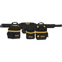 Large, Gusset-Style Pockets provide extra capacity and easy access. 9 Main Pockets with 20 Smaller Pockets and Sleeves for nails, parts, tools, nail sets, pencils, etc.. Zippered Pocket to secure valuables, plus carabiner for keys or lanyard. Patented Pouch Handle allows for simple belt adjustments and easy one-hand carrying. Fully-Adjustable, Padded Yoke-Style Suspenders with Dri-Lex® for added comfort, includes extra pocket and neoprene-padded cell phone holder. 5'' Padded Belt with Dri-Lex® and Double-Tongue Roller Buckle for added comfort and better belt stability. Fits Waist Sizes 29''-46''.